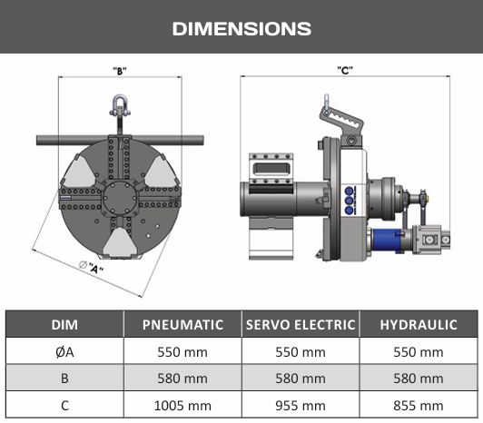 - Power: Servo electric, pneumatic or hydraulic