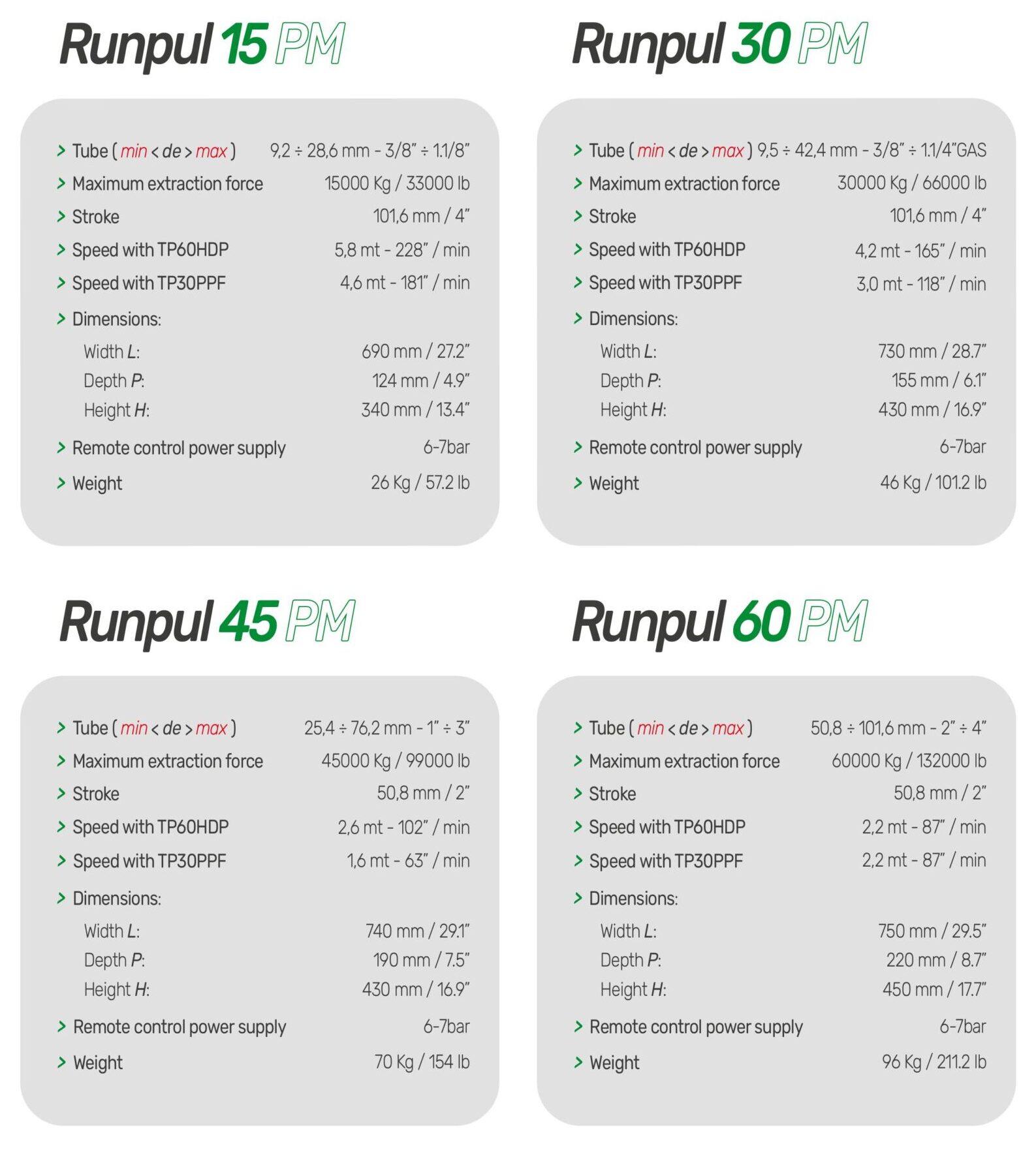 The Maus Italia Runpul series of tube pullers are the result of more than thirty years’ of experience in the field of tube extraction.