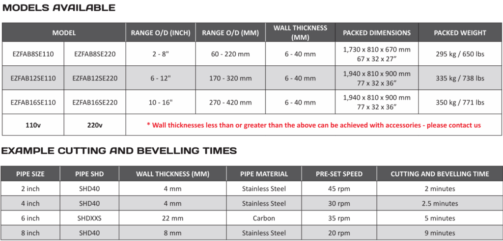 The E-Z FAB is a revolutionary new cutting and bevelling system for pipes. Ideally suited, but not limited to workshops, and high productivity process environments.