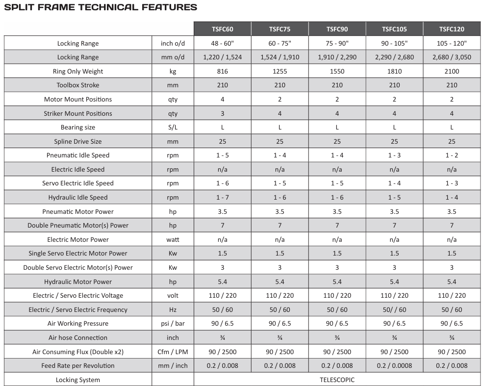 RANGE: 48″ to 120″ o/d (1,220 – 3,050mm)