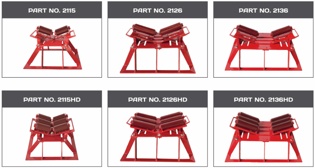 2126  Pipe Launcher (two rollers)  4 – 48″ / 101.6 – 1,219.2 mm  10,000 lbs / 4,540 kg  162 lbs / 73.5 kg  30 x 36 x 19″ / 762 x 914.4 x 482.6 mm