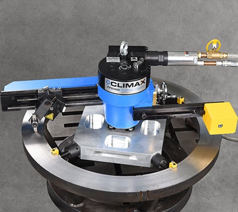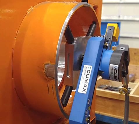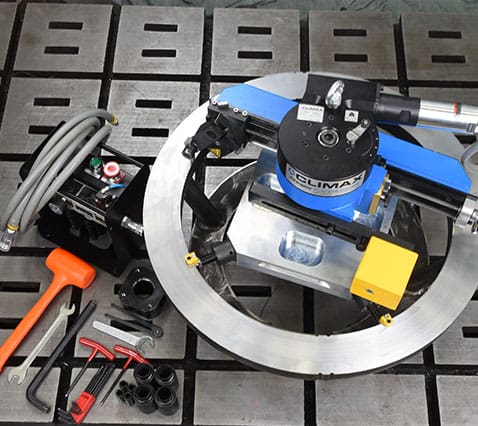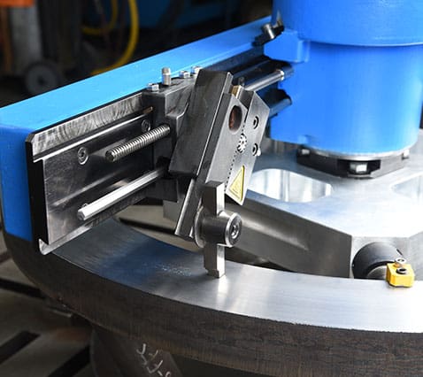 Tool head and tool bit rotate 360˚, which allows for machining and positioning at an angle. This provides flexibility to create a variety of cuts including chamfers, o-ring grooves, RTJ grooves, lens rings and other angular surfaces.