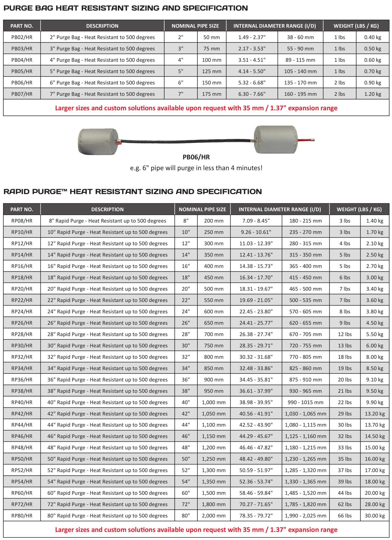 The PPM Pipe Purge Bag and Rapid Purge Systems are both available as heat resistant versions.