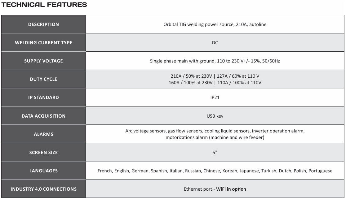 Suitable for concurrents closed heads: AMI, Polysoude, Orbitec, Orbitalum, ESAB